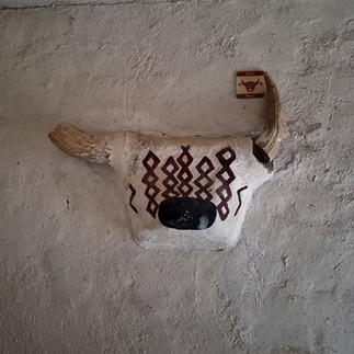 ”Avlarımız bereketli geçsin” diye yapılan kille doldurulmuş boğa başları...