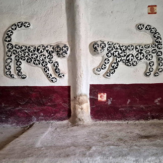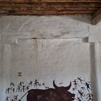 Merdivenden inilen odalarda rengarenk duvarlar... Beyaz sıvalar üstüne çizilmiş avcıları, dansçıları, tabii vahşileri...